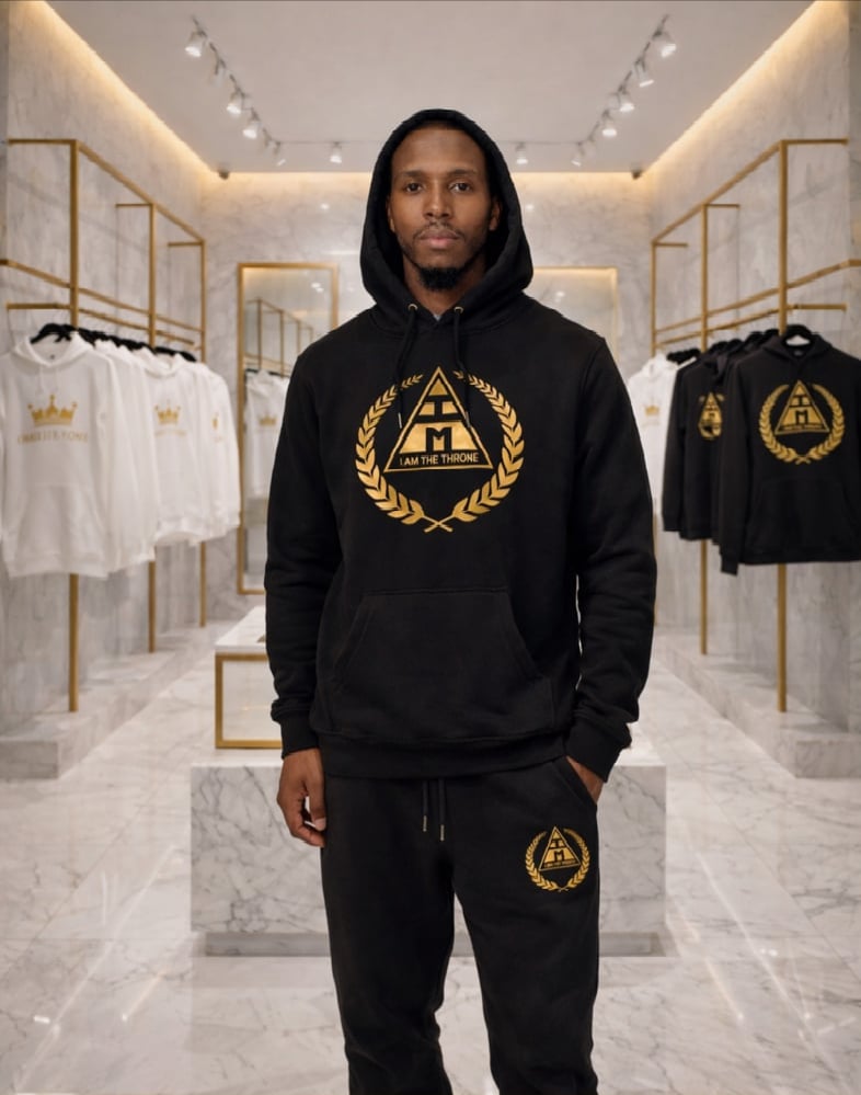The I AM THE THRONE Black & Gold Sovereign Hoodie is engineered for leaders who move with intention. Crafted from heavyweight organic cotton and finished with a bold gold crest, this hoodie represents discipline, balance, and earned rulership.